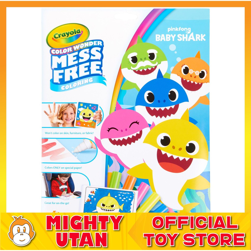 BABY SHARK COLORING PAGES & MARKERS: Features 18 Baby Shark's Big Show Coloring Pages and 15 Color Wonder Markers in Classic Colors. COLOR WONDER: Color Wonder Marker Inks magically appear on specially formulated paper, while they do not show on skin, clothing, or furniture. BABY SHARK CHARACTERS: Pair this Coloring Set with other Baby Shark toys for even more ways to play!