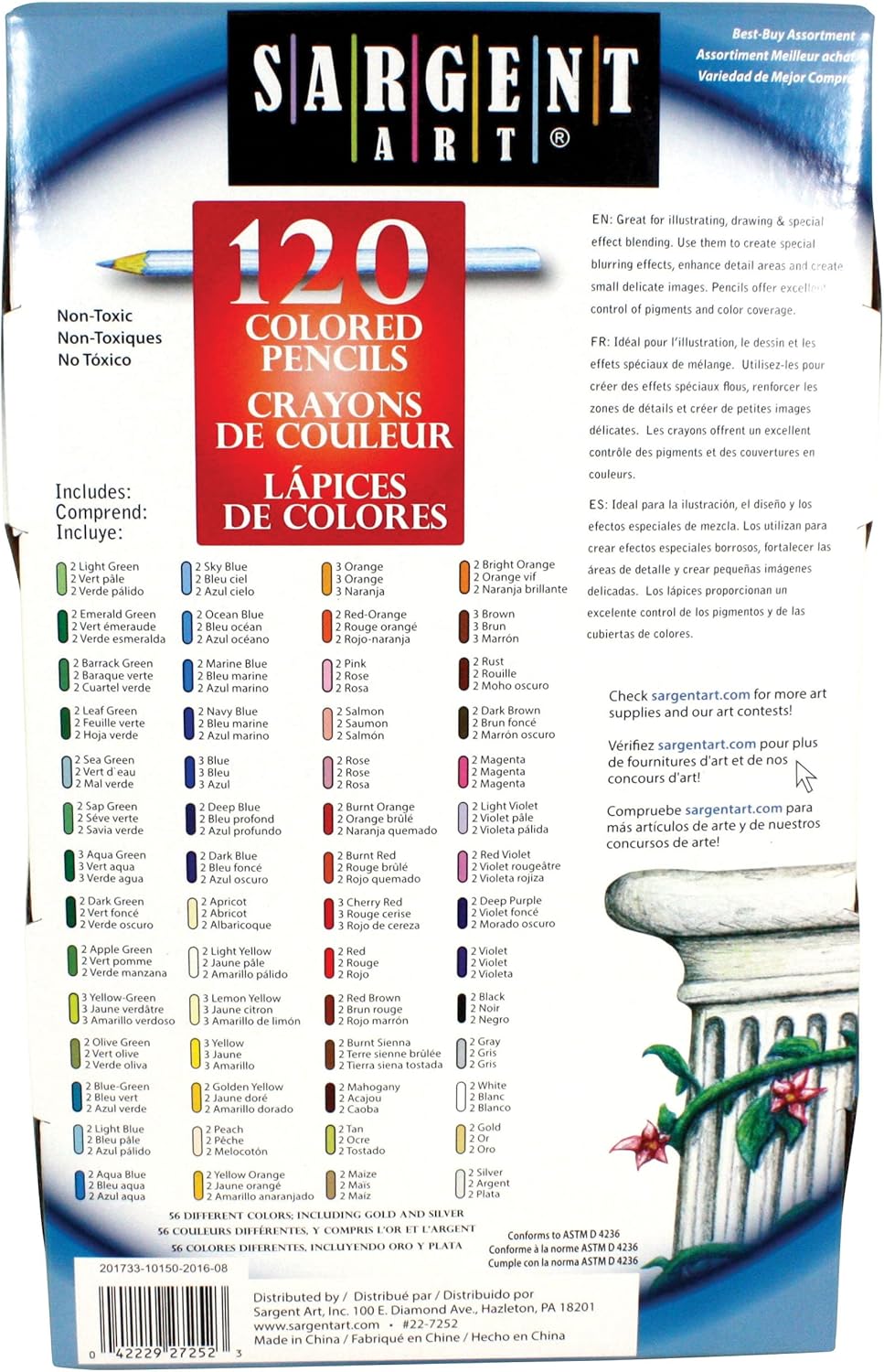 Sargent Art Colored Pencils, 50 Count - Walmart.com Sargent Art-Colored Pencils. Subtle colors with a variety of shade and hue variations. Features color coordinated barrels matching each lead. WA Portman Colored Pencils 48 Pack - Premium Lightfast Colored Pencils for Artists & Students - Compact Color Pencil Pack Great for Travel - Colored...