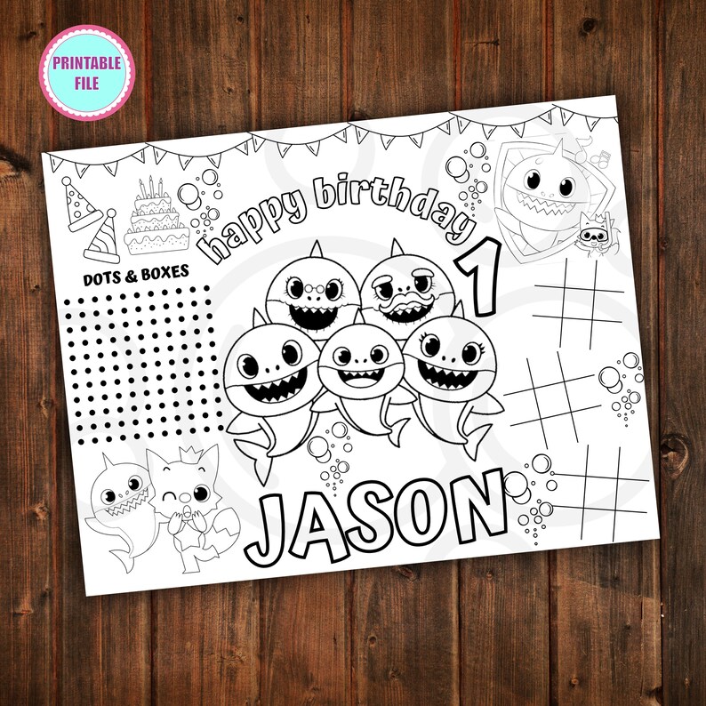 Baby Shark Coloring Pages | Birthday coloring pages, Shark ... Baby Shark Theme cake topper / cake centerpiece is perfect for a Pink Fong Baby Shark Birthday celebration DIGITAL FILE INCLUDES: One (1) 300 dpi High Resolution PDF file formatted to be printed on US Letter/A4 size, the printed cake topper will be measured at approximately 6.5" in width and 6.1" in height.