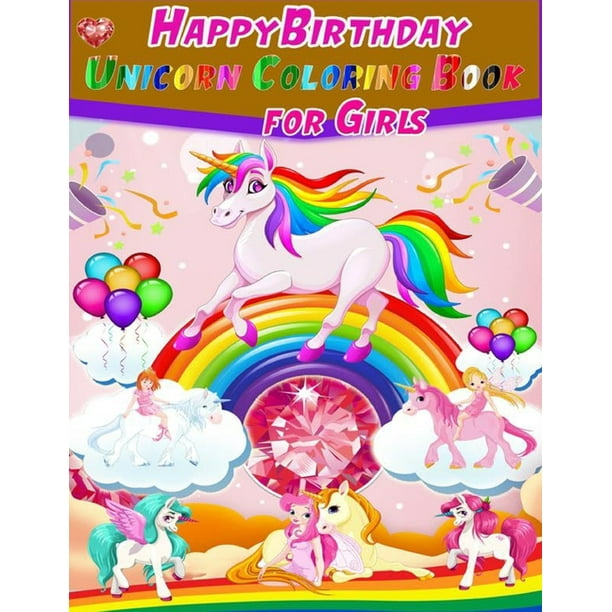 Happy Birthday Unicorn Coloring Book for Girls : A Wonderful Collection Of 50 Cute & Unique Illustrations Sparkles Coloring Pages, Birthday Gift Idea. ...