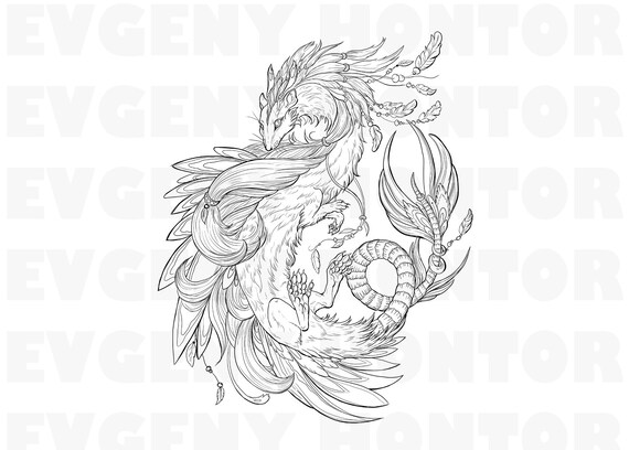 6,874 Japanese Dragon векторные изображения, графика... Dragon coloring book for adults vector illustration. Anti-stress coloring for adult. Coloring page for printing and drawing. Traditional China symbol. Asian mythological black animal.